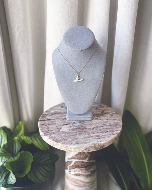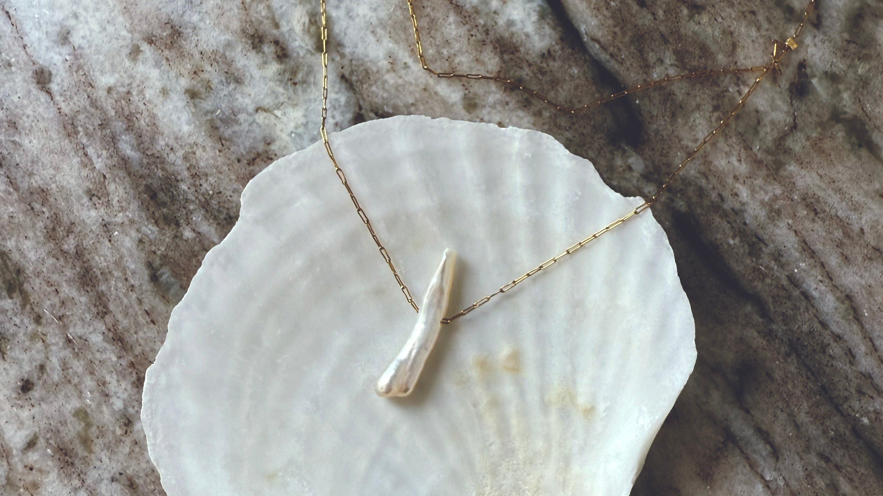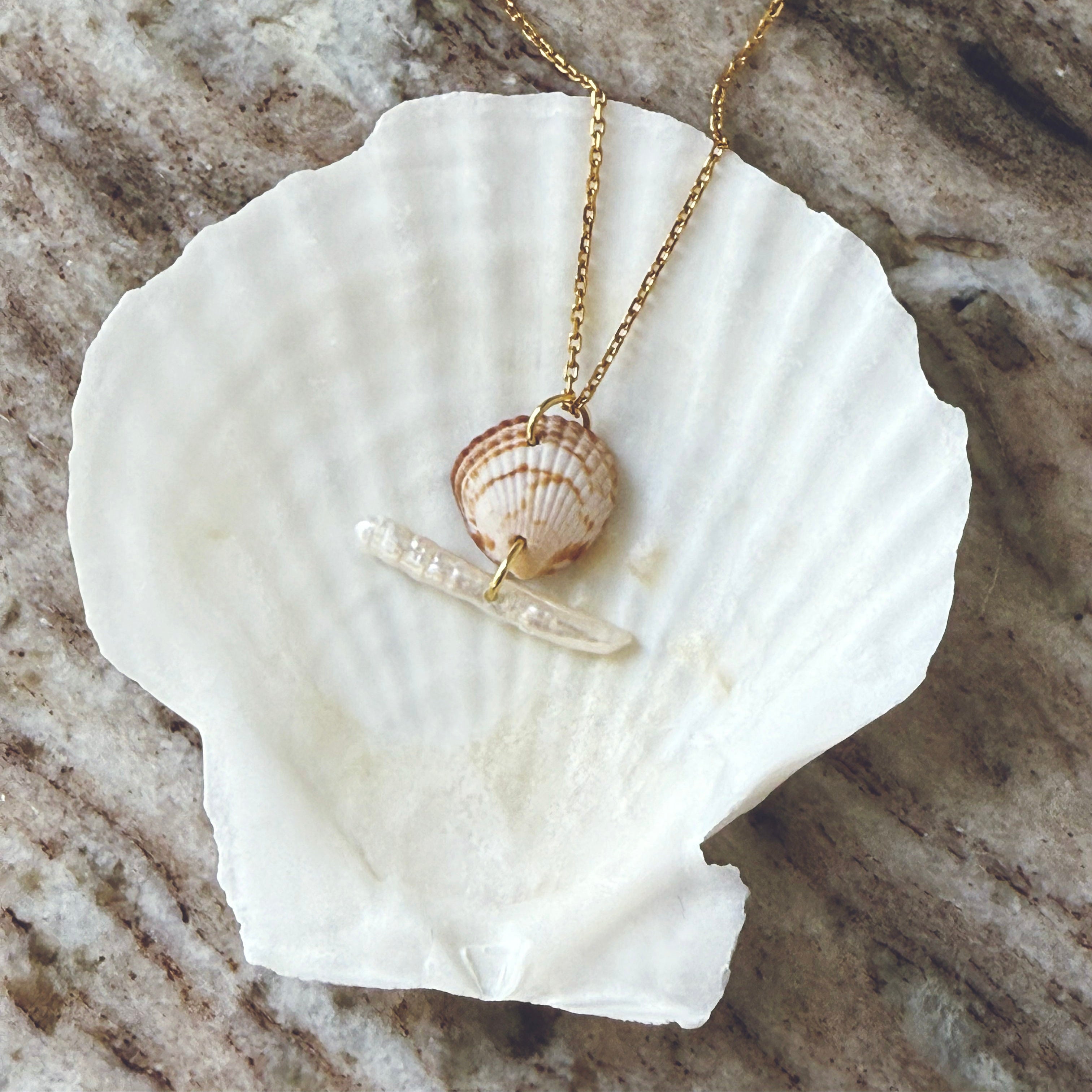 Handmade jewelry crafted from freshwater pearls and ocean-found shells. Each piece is one of a kind.